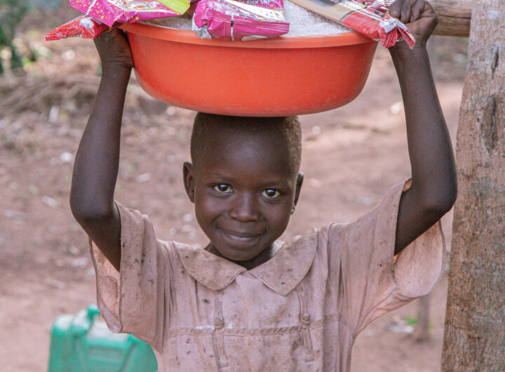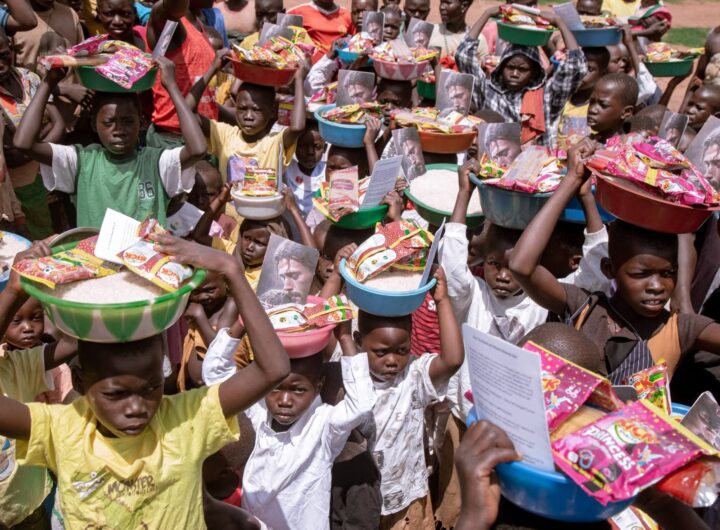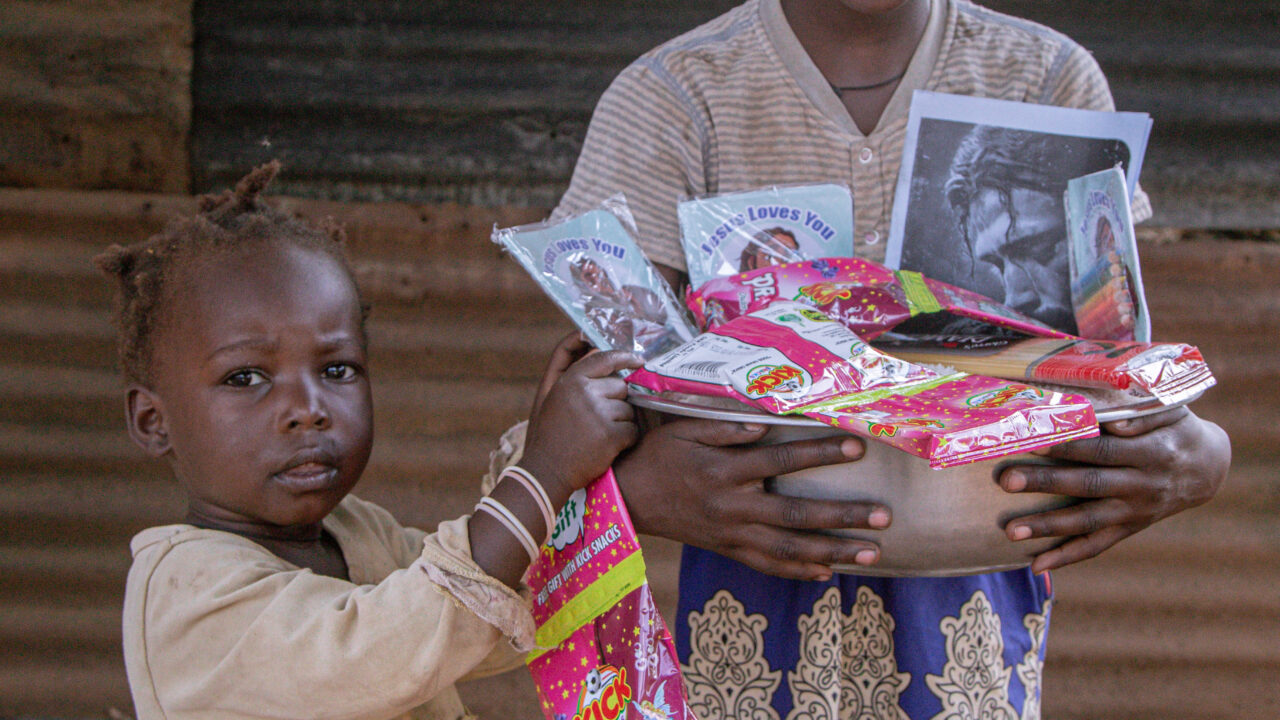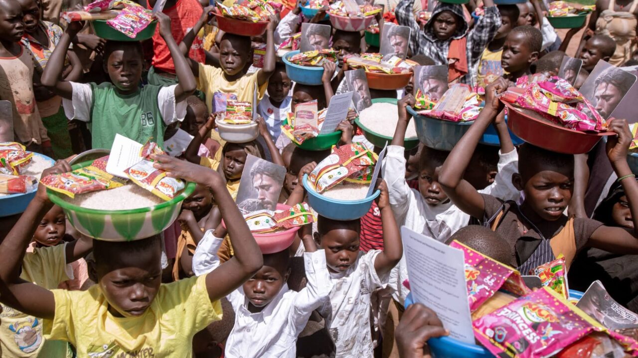 Children rushed down the dusty footpaths with joy sparkling in their eyes, each one holding food from...