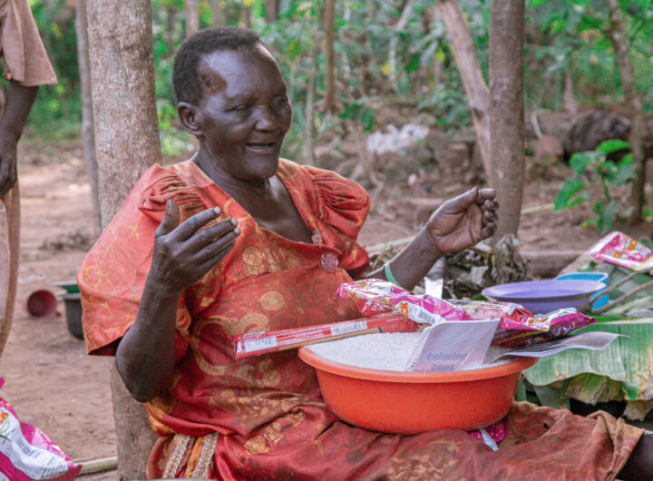 Four hundred pounds of rice were divided among many families, with parents often sending their children to...